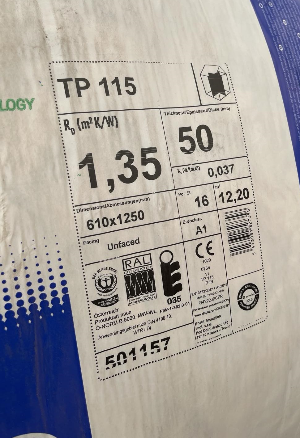 4 pakuotės vata Knauf TP115 storis 50mm plotis 610mm
