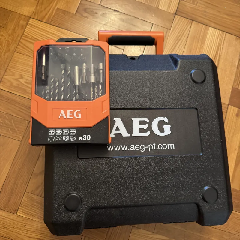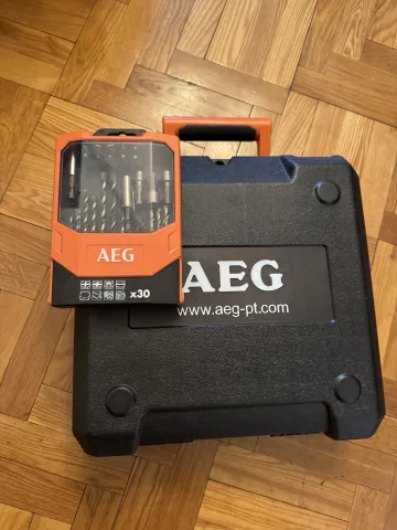 Pilnas komplektas naujas:lagaminas dvi baterijos kroviklis dokumentai+grąžtų rinkinys originalus aeg pirkėjui kaip bonusas