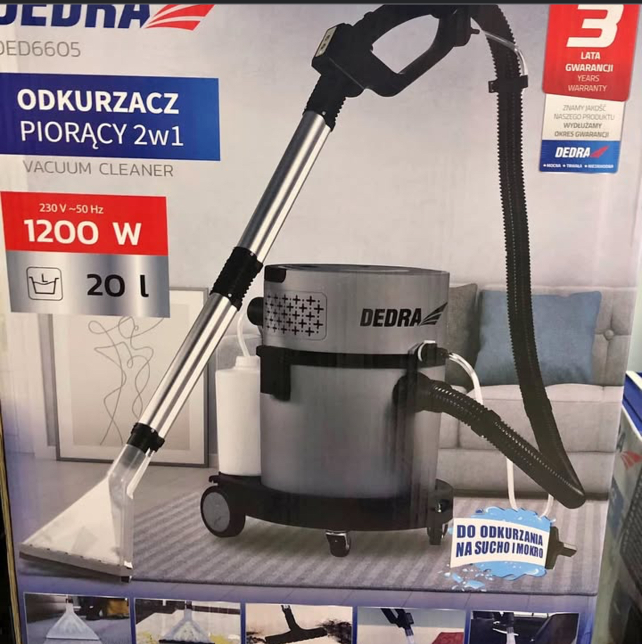 Daugiafunkcinis plaunantis dulkių siurblys Dedra DED6605, 1,2 kW 3 metu garantija