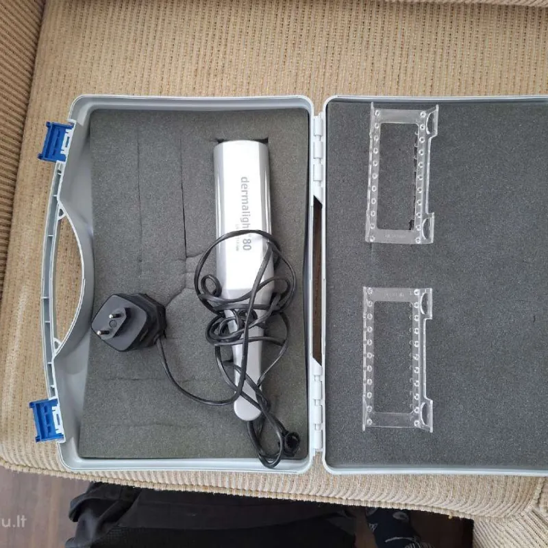 Medicininis UV fototerapijos prietaisas, gydantis UV-B 311nm spektro spinduliaisSkirtas efektyviam psoriazės, vitiligo, vitamino D deficito gydymuiNaudojamas gydant odą mažuose plotuose arba visame kūneTinka sunkiai prieinamoms kūno sritimsSuapvalinti, šviesai laidūs šukų dantukai nepažeidžia galvos odos, gydo švelniai ir maloniaiNuimamas šukų antgalis yra atsparus plauti indaplovėjeDėl didelio intensyvumo gan trumpas gydymo laikasPrietaisas lengvas, patogus, paprastai valdomasTinkamas naudoti gydymo įstaigose ir namuoseEfektyvumas patvirtintas akredituotose tyrimų laboratorijose.