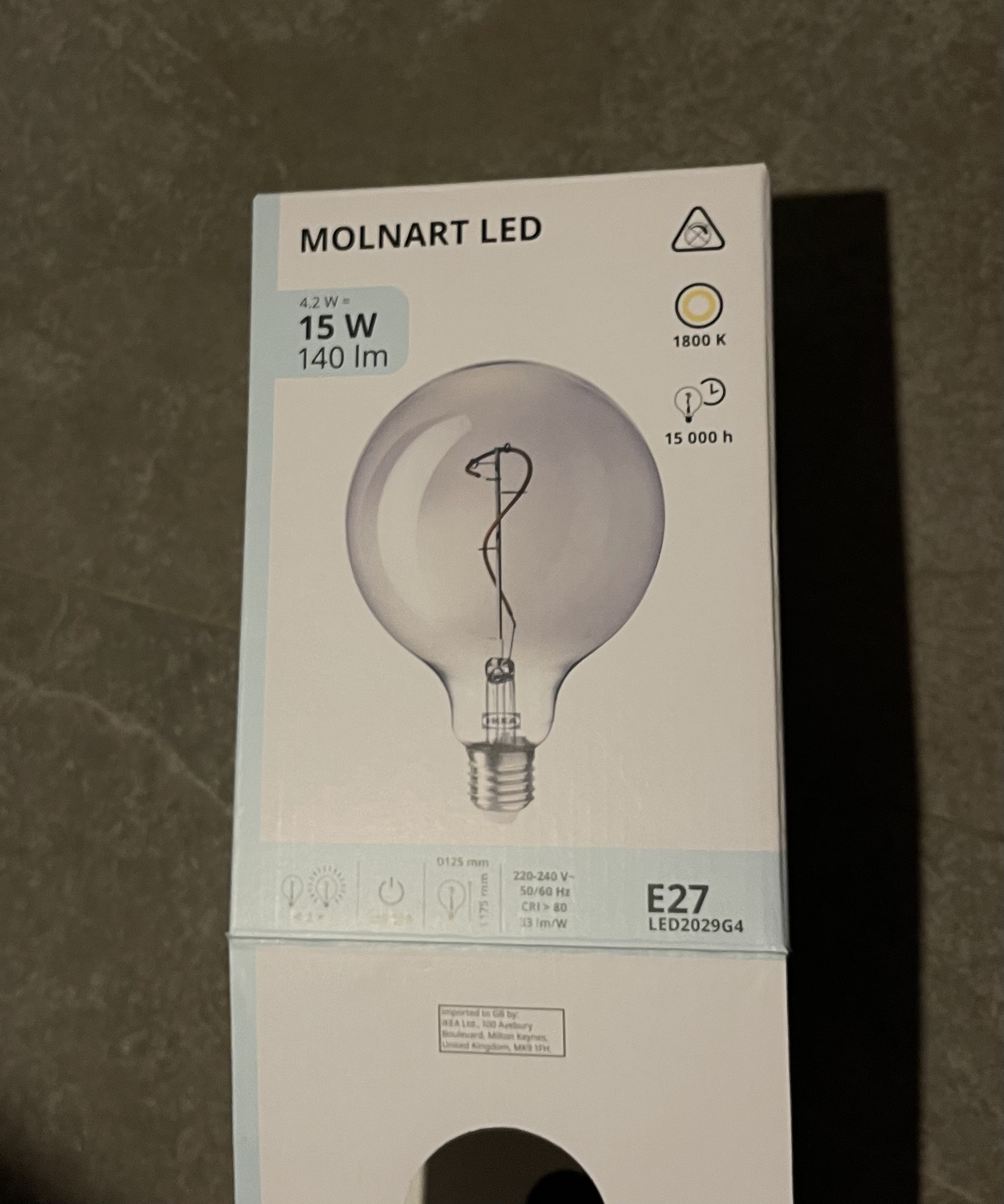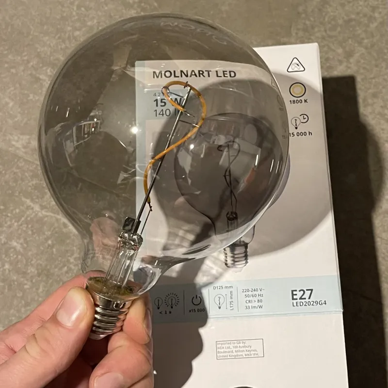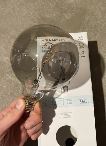 MOLNART LED lemputė E27, 140 liumenų, apvalus pilka, skaidrus stiklas, 125 mm