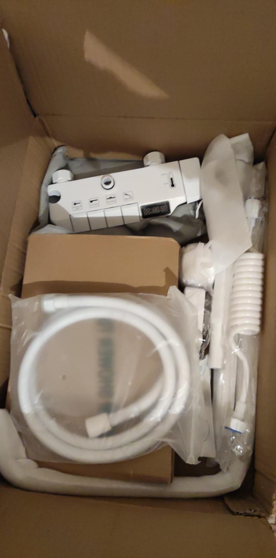 Baltas su Lcd ekranu rodo laika maudyniu ir temperatura. 4 vandens pozicijos. Preke nauja! Jo kaina 160€
