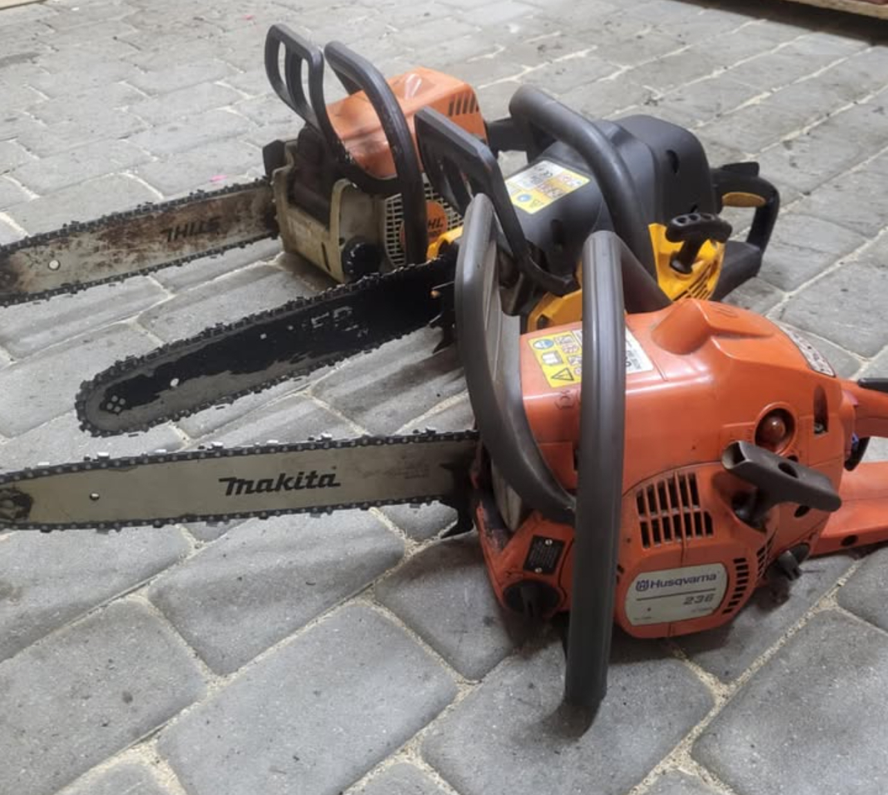 Parduodamas naudoti, gyvi, tvarkingi grandininiai pjūklai. Vedasi be priekaištų.