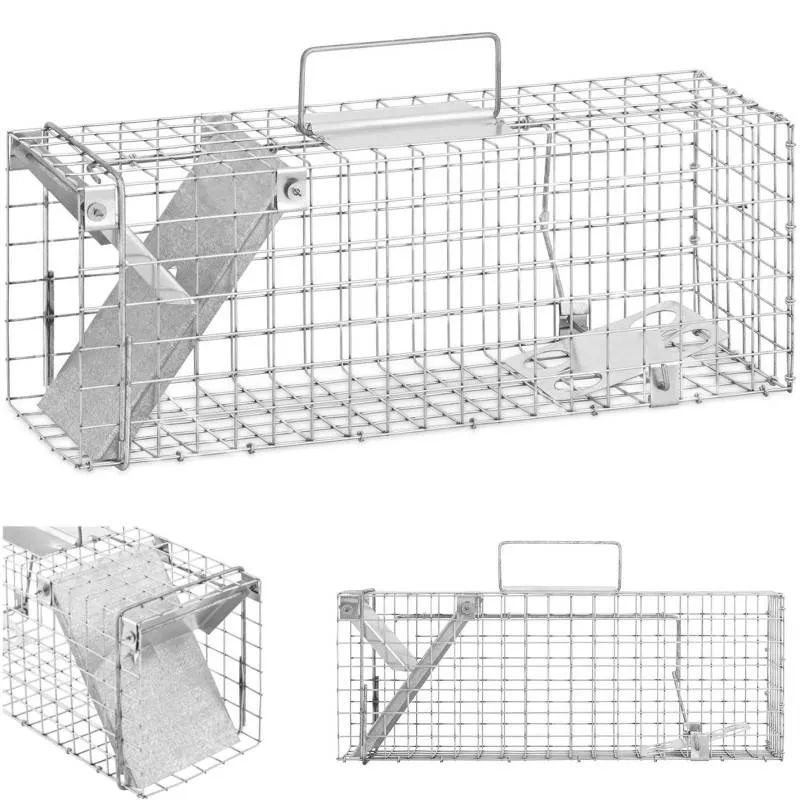Spąstai turi nešimo rankenas - svarbu, kai nešiojate sugautą gyvūną, kad jis nesudraskytų rankos.