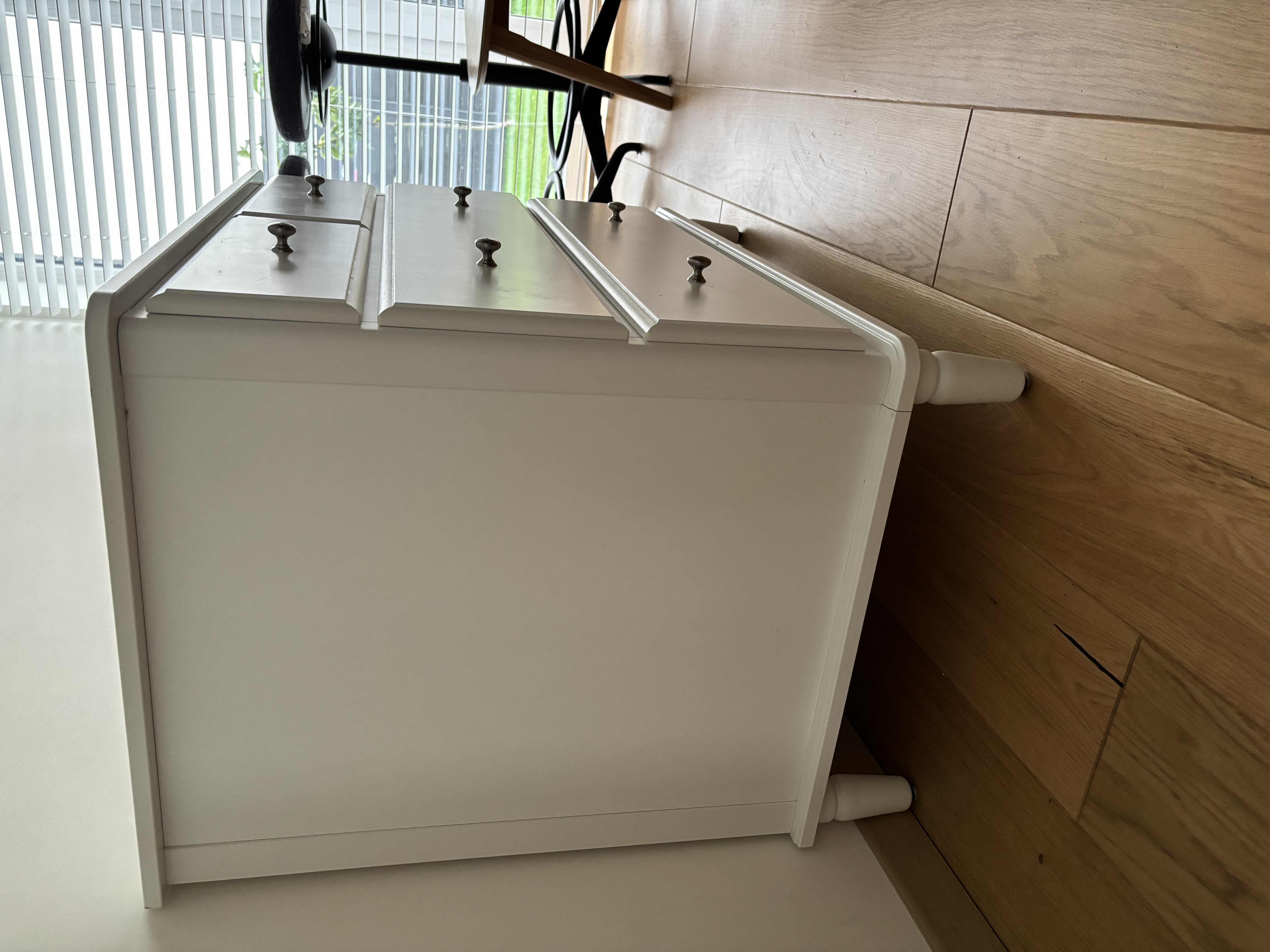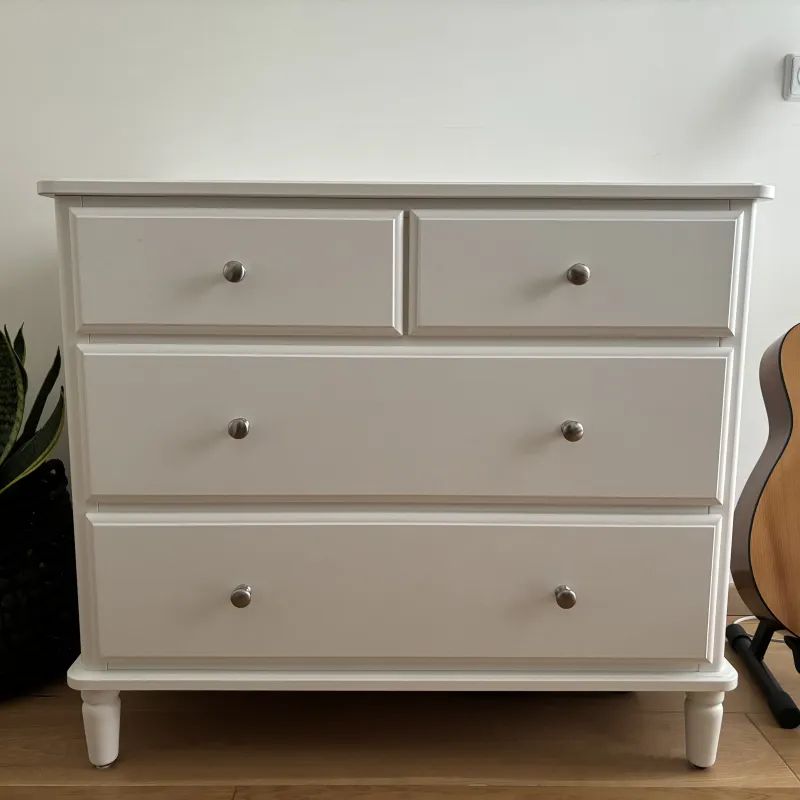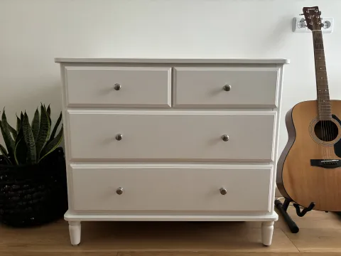 Puikiai išlaikyta komoda su 4 stalčiais, balta, 87x76 cm