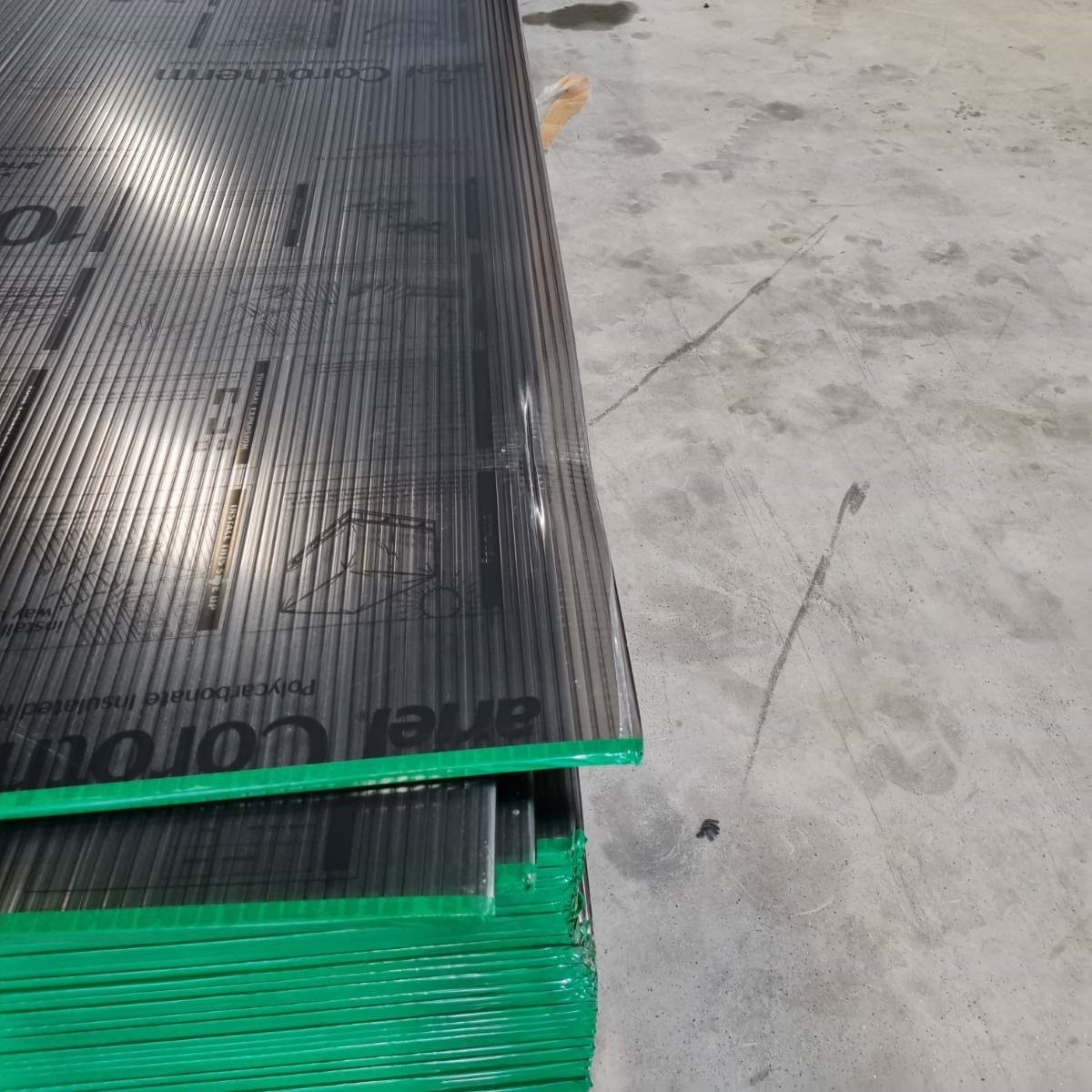 ES PAGAMINTAS KANALINIS POLIKARBONATAS! Su defektu – polikarbonato lakštai turi mechaninių pažeidimų apie 5-10 cm nuo kraštų. Naudingas lakštų plotas – 2x3 m, 2x6 m. Defektai naudojimui įtakos neturi.