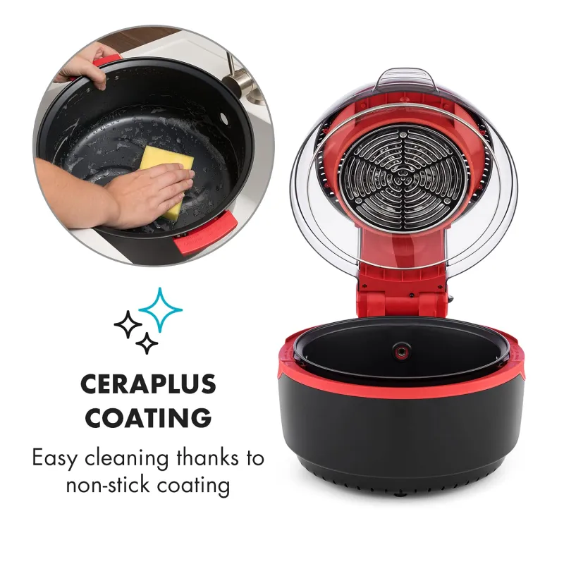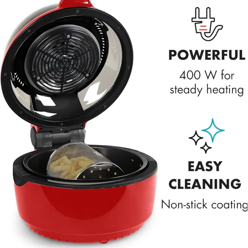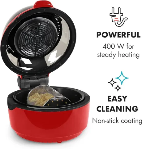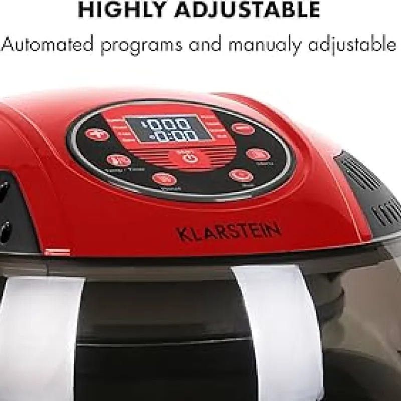 Šis modelis turi 9 litrų talpą, kas leidžia gaminti didesnius kiekius maisto vienu metu, todėl jis puikiai tinka šeimoms ar vakarėliams. Be to, Klarstein VitAir Turbo pasižymi intuityviu skaitmeniniu valdymu ir įvairiomis gaminimo programomis, todėl galite lengvai pasirinkti tinkamą nustatymą pagal norimą patiekalą. Raudona spalva suteikia modernų ir stilingą akcentą bet kuriai virtuvei.