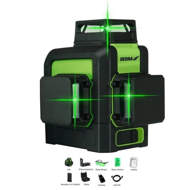 Patikimas 3 ašių nivelyras Dedra su žalios spalvos lazeriu