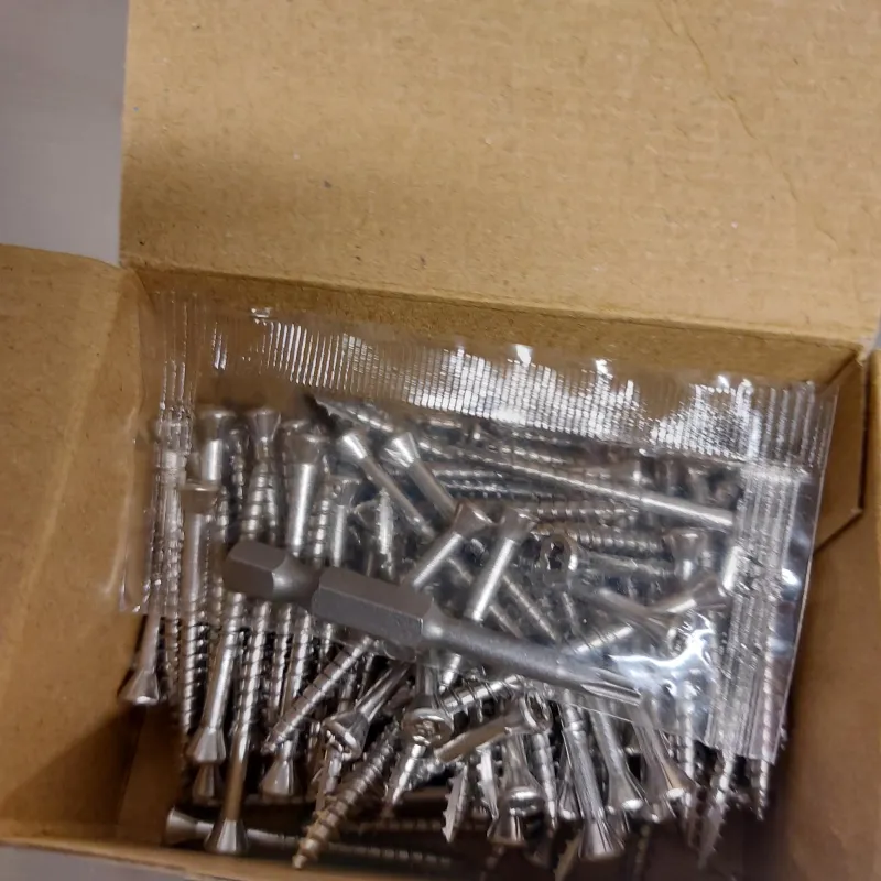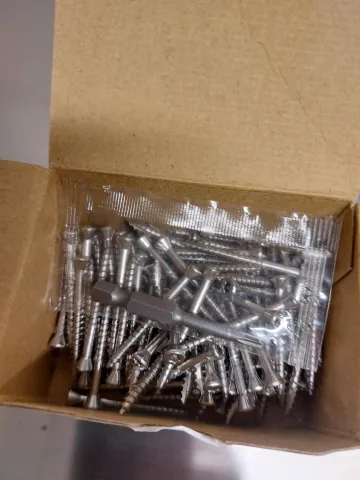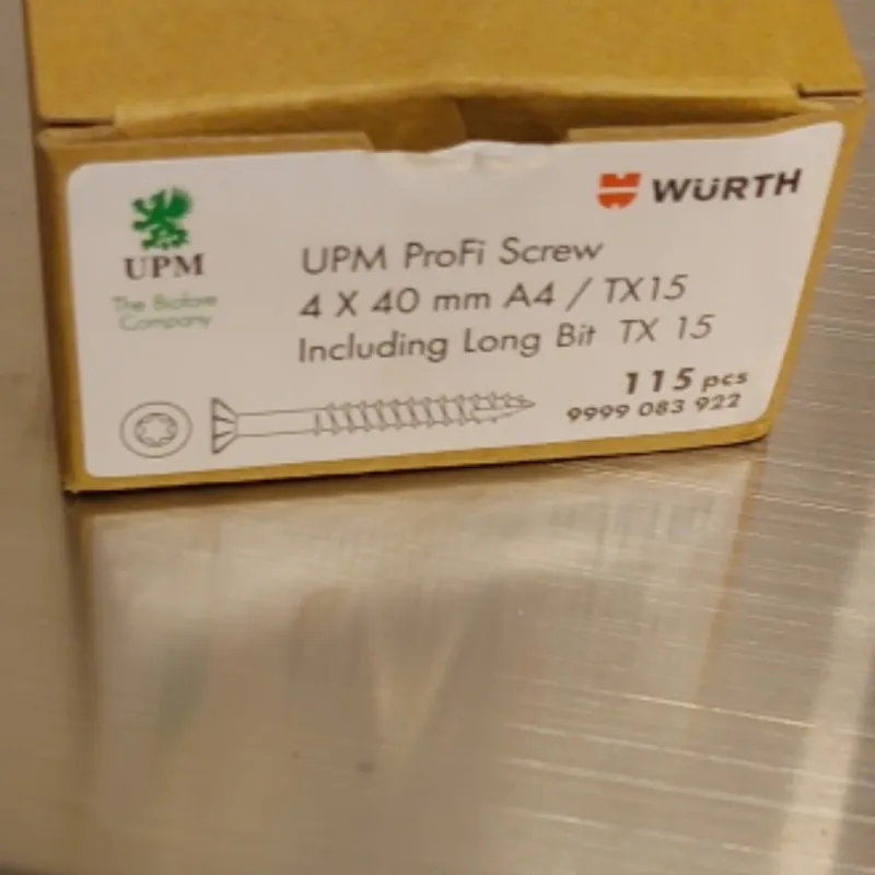Nerūdijančio plieno medsraigščiai lauko darbams, 4×40. Dėžutėje 115 vnt. ir TX15 antgalis. Dėžutės kaina 2 € . Parduodame dėžėmis kurioje 48 dėžutės. Kaina 96 €. Tel. pasiteiravimui +37066760215