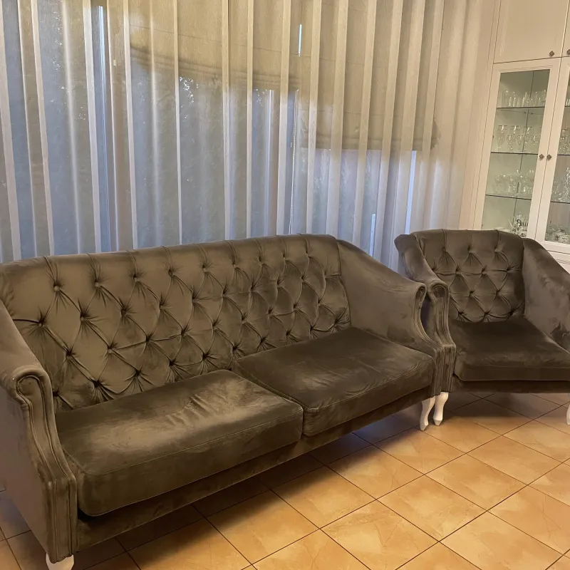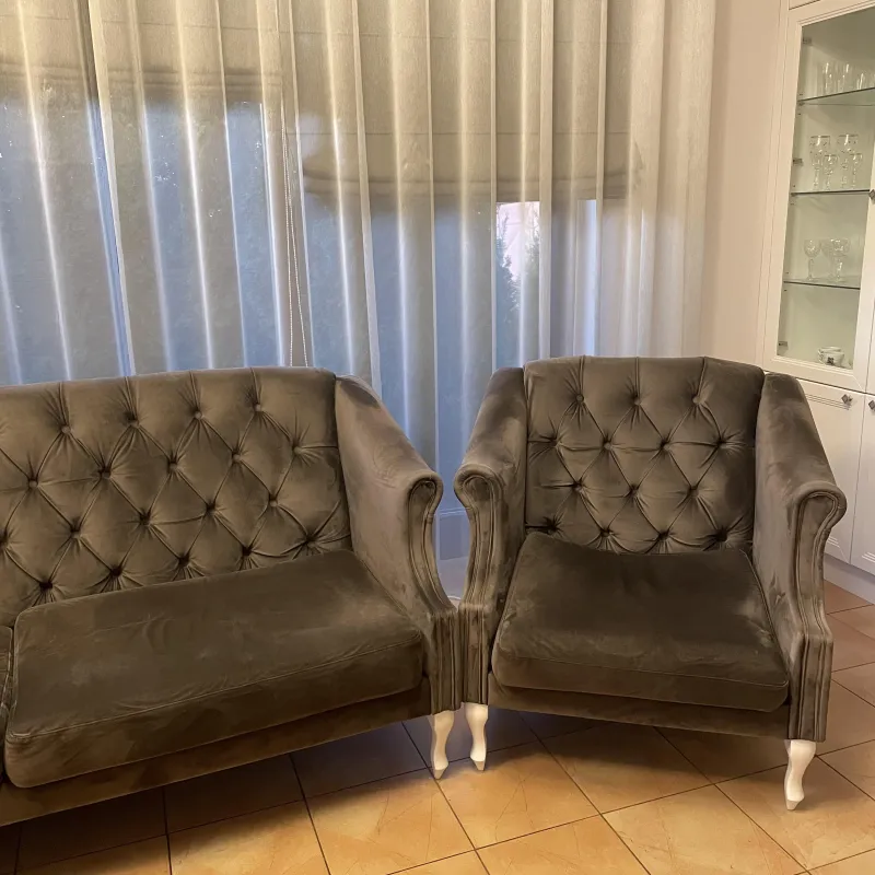 Sofa + fotelis. Naudoti nuo 2017-10 iki 2024-12. Įsigijimo kaina 946,00 EUR. Gamintojas "BFP Group".