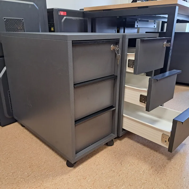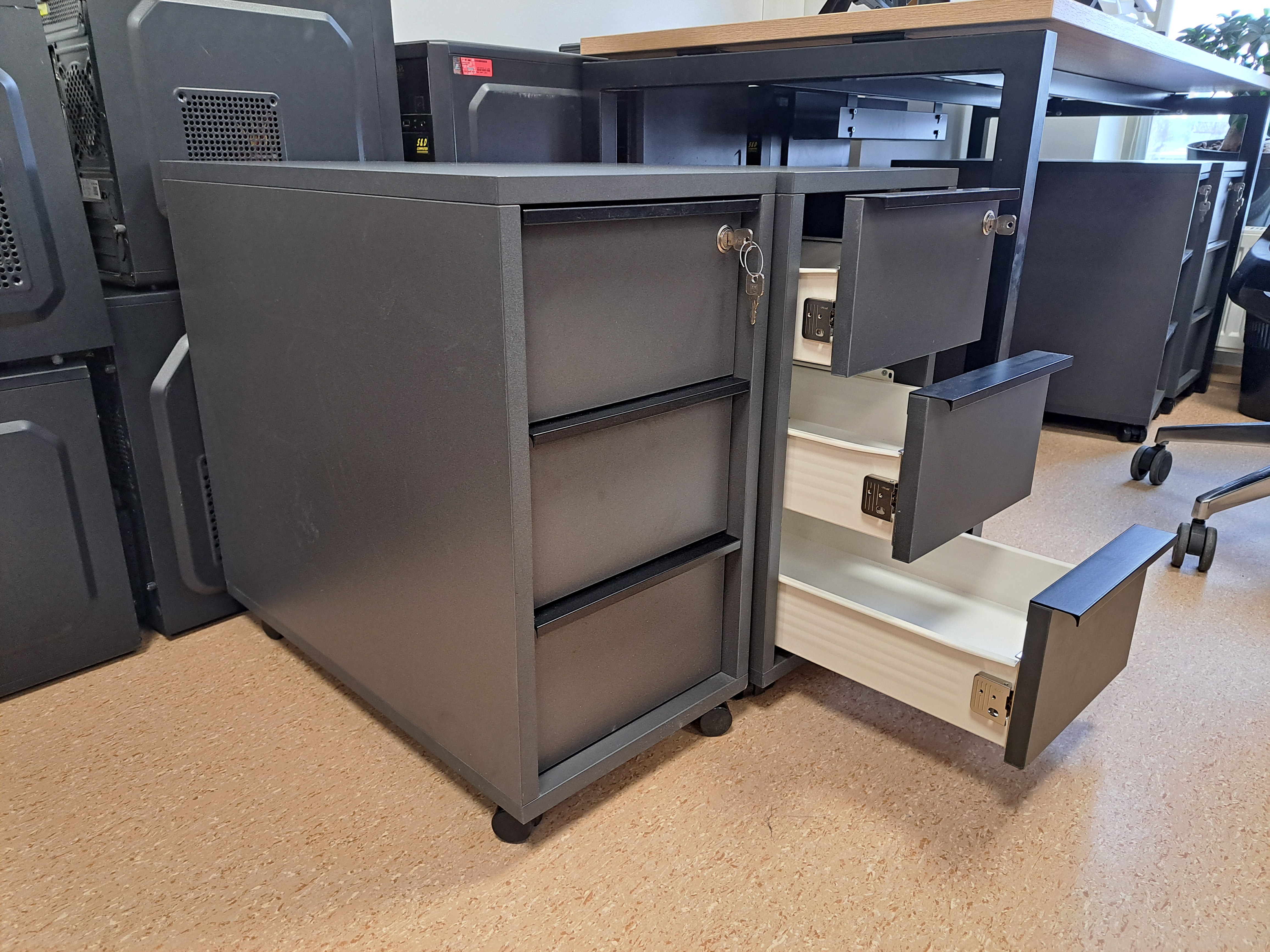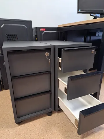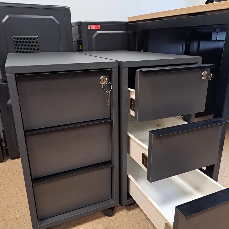 Biuro spintelė su trimis stalčiais. Kokybiškos baldų plokštės lengvai atsidaromi stalčiai geri mechanizmai. Kompaktiška me per maža su ratukais. Spintutė ant ratukų (3 stalčiai) su centriniu užraktu. 298x600, H=560. NOVA Narbuto baldų gamybos. Vilnius. Turime kelis vnt.