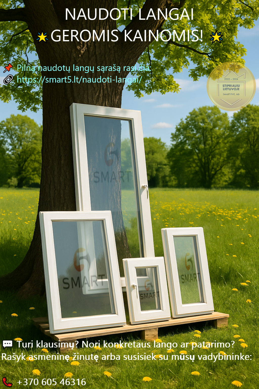 Platus pasirinkimas naudotų langų – nuo mažų iki didelių, skirtingų išmatavimų ir tipų.