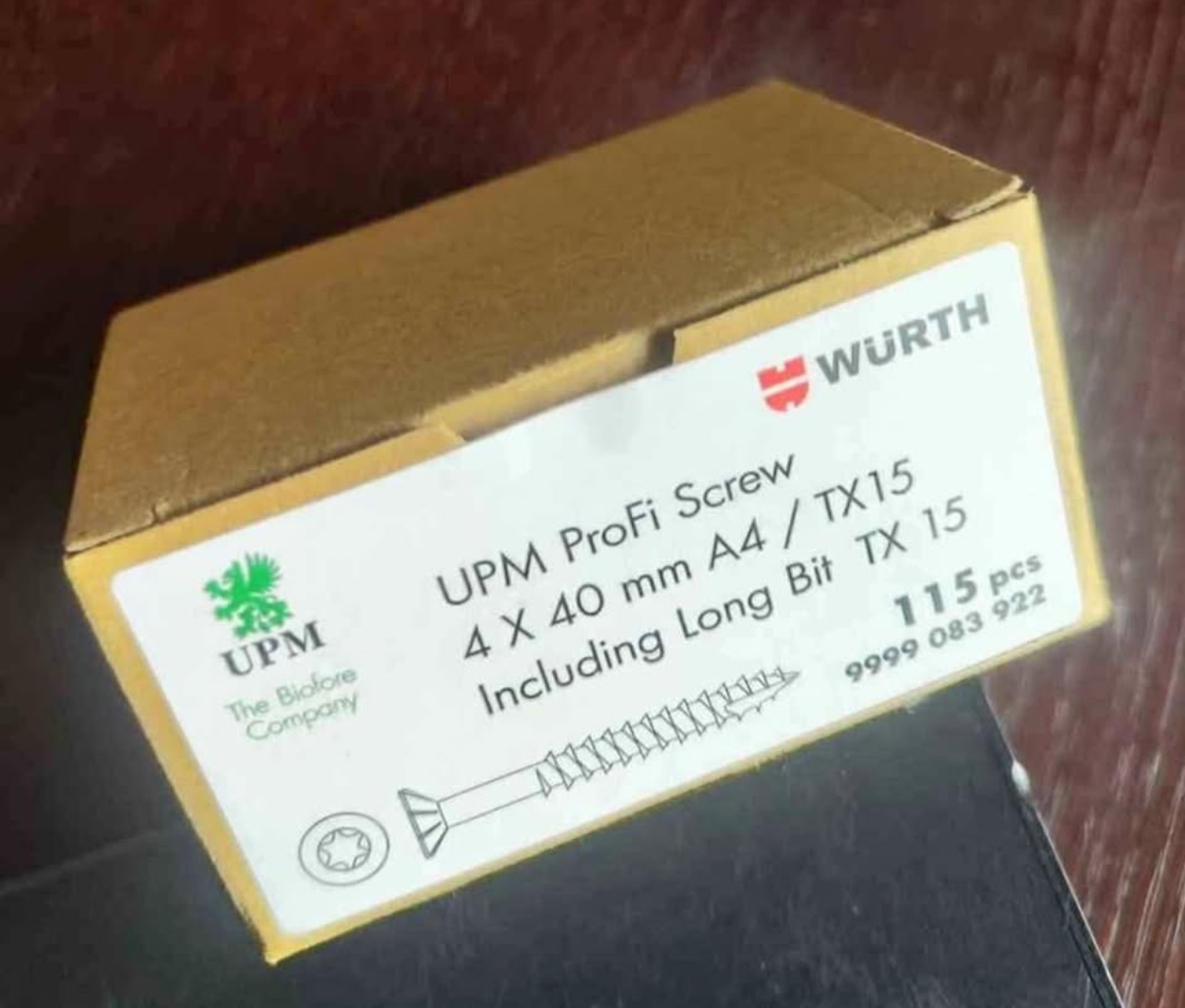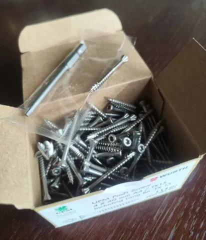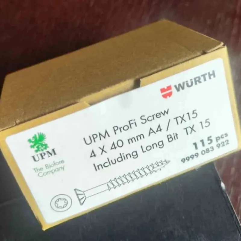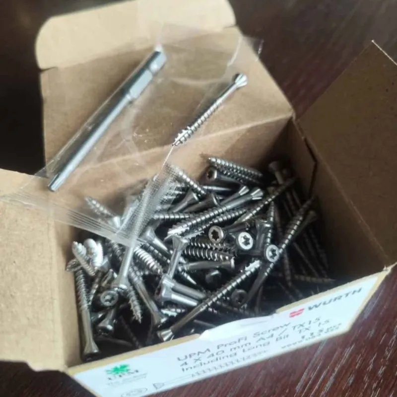 Nerūdijančio plieno würth medsraigčiai lauko darbams, 4×40. Dėžutėje 115 vnt. ir TX15 antgalis