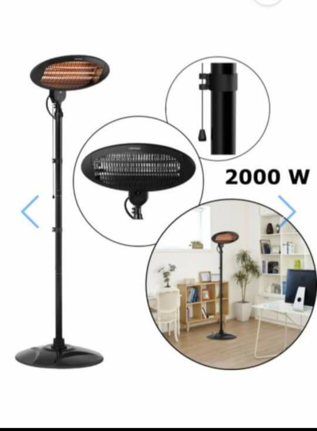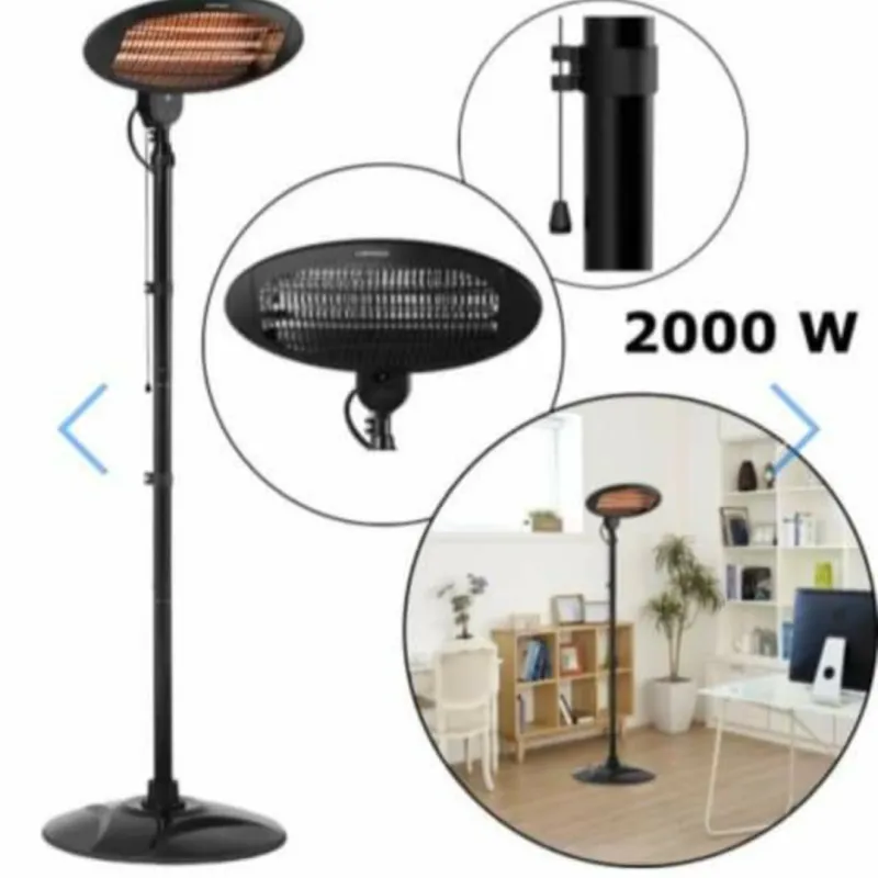 Infraraudonųjų spindulių šildytuvas leidžia patalpas šildyti tolygiai bei išlaikyti komfortišką temperatūrą. Grybo formos viršūnė itin efektyviai paskirsto infraraudonųjų spindulių generuojamą šilumą artimiausiai aplinkai. Lauko šildytuvo aukštį galima reguliuoti nuo 1,8 iki 2,1 m. Šilumą nesunkiai reguliuosite pasirinkę 650, 1350 arba 2000 W šildymo galią. Statomas lauko šildytuvas greitai pasiekia norimą temperatūrą ir gali būti pritaikytas bet kokiai situacijai bei naudojamas efektyviausiai.