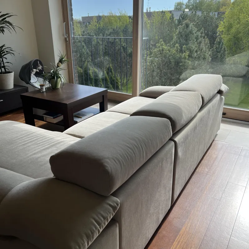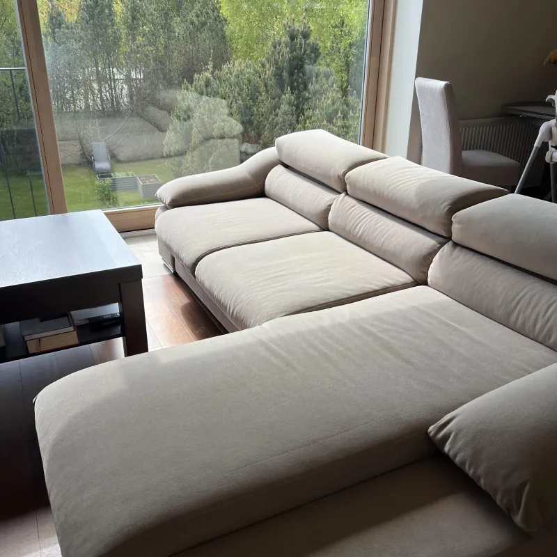 Yra keletas defektų, matomi nuotraukoje, bet naudotis netrukdo. Kad atsinaujintų spalva galima padaryti šlapią valymą. Dėl daugiau info kreiptis žinute.
