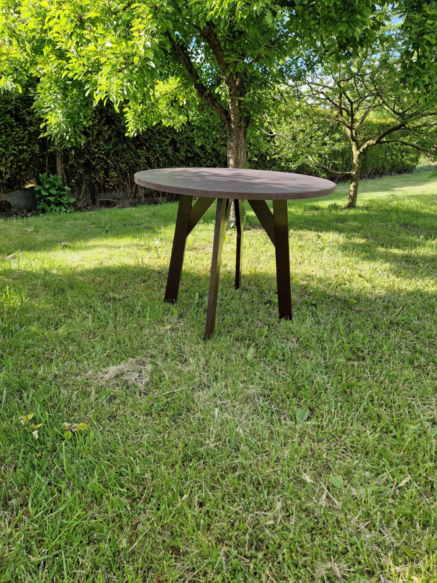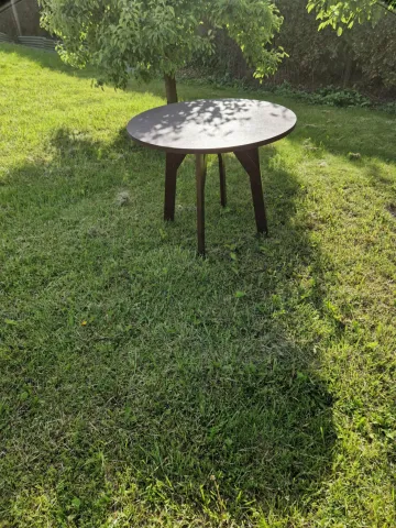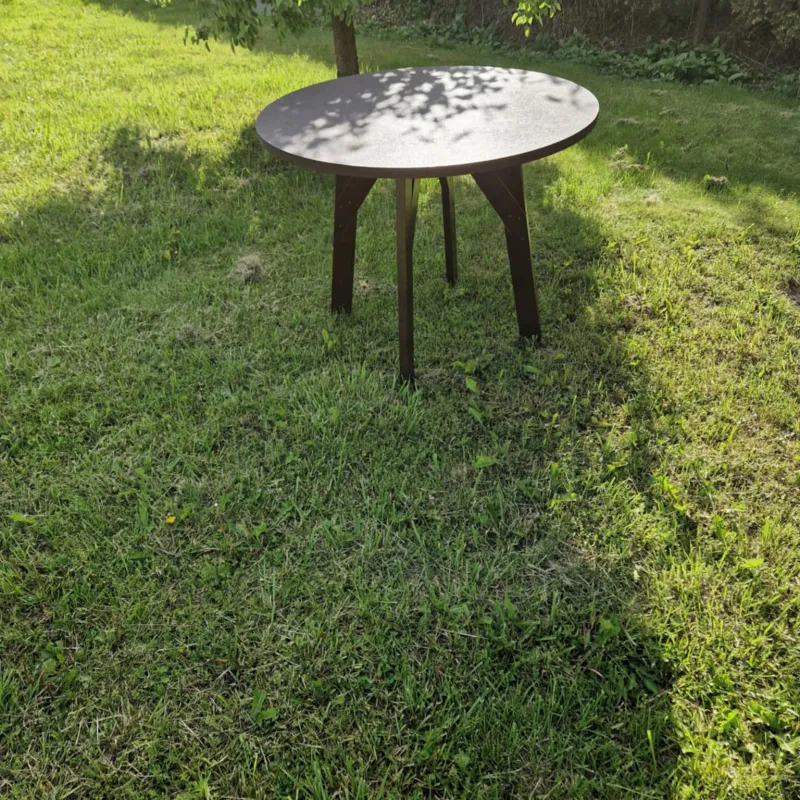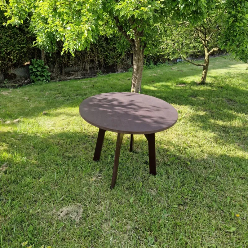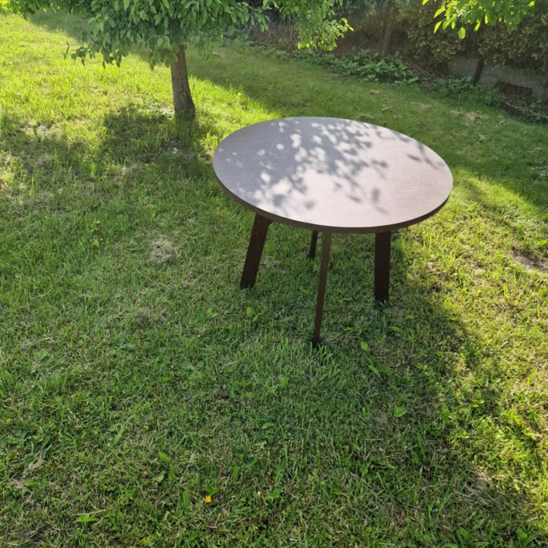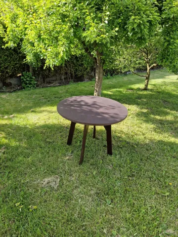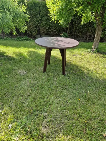 Naujas stalas. Pagamintas iš jūrinės plokštės. Atsparus įvairioms oro sąlygoms! Tinkamas lauke sodyboje, ar pan. Matmenys: Aukštis 75cm, skersmuo stalo 97cm.