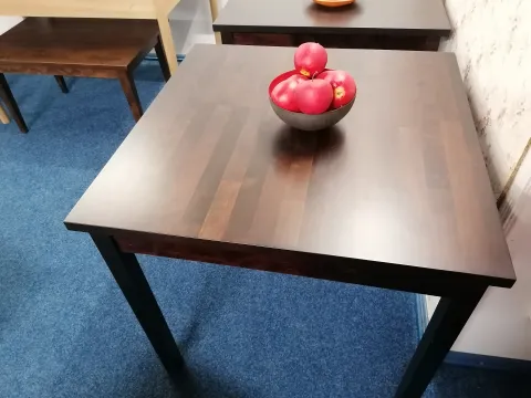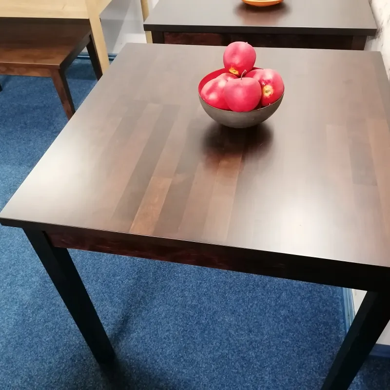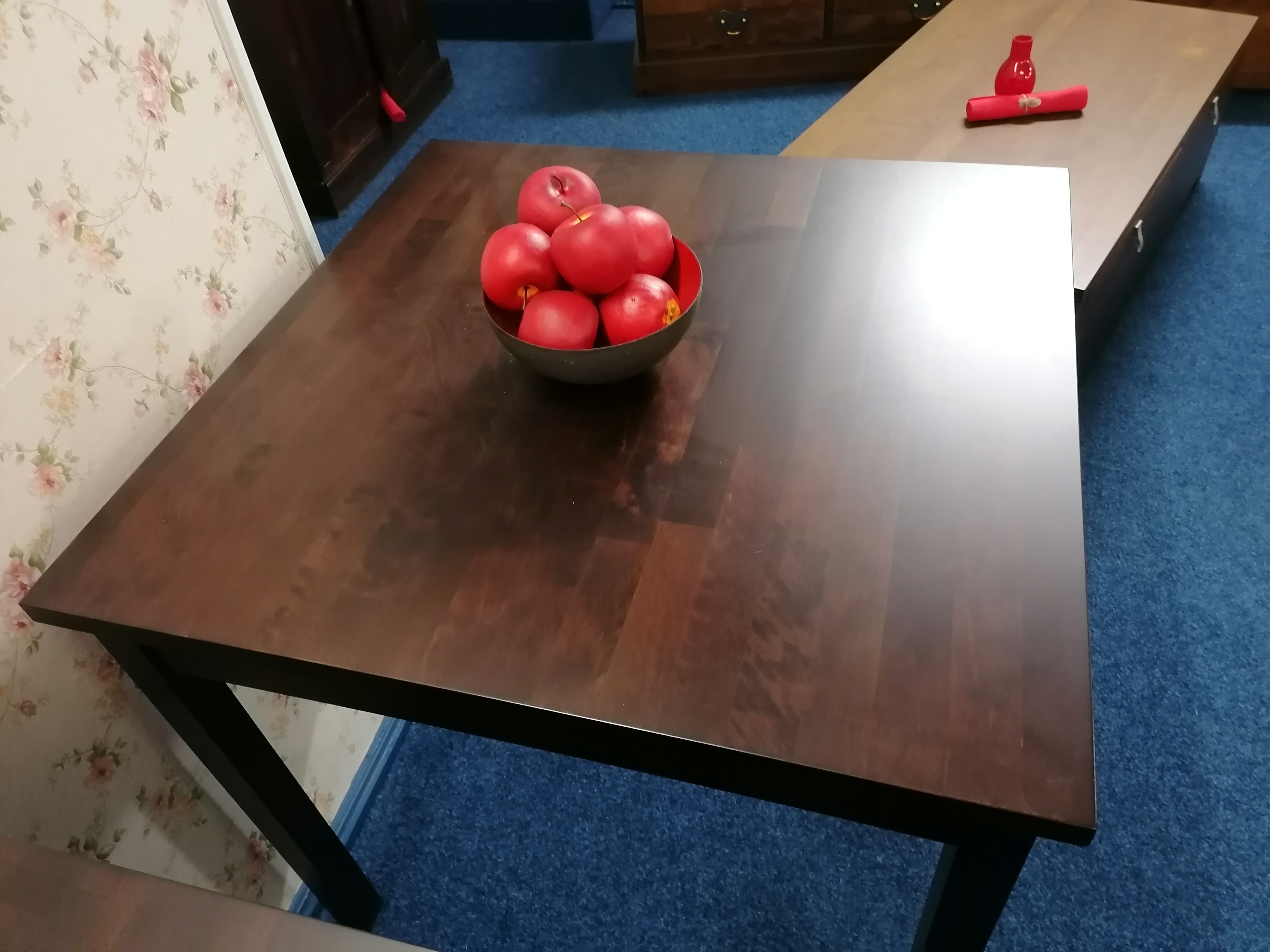 Medienos masyvo staliukas. Pagamintas iš beržo medienos, beicuotas, riešuto spalvos