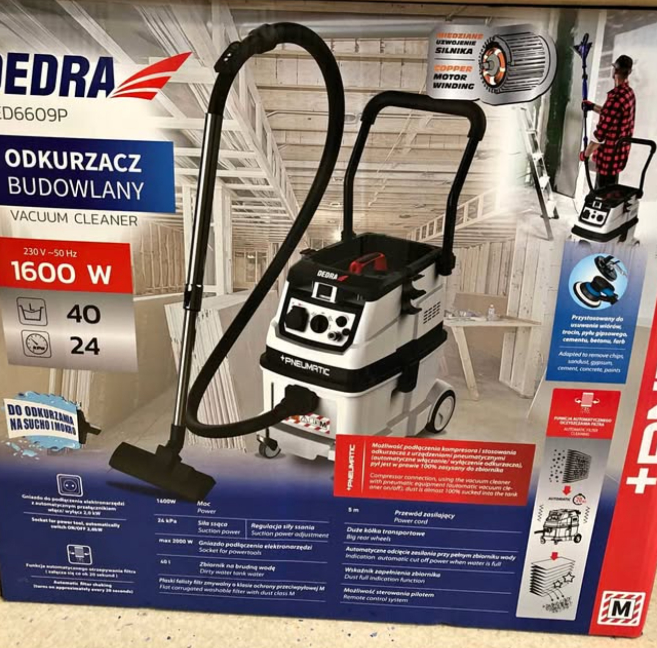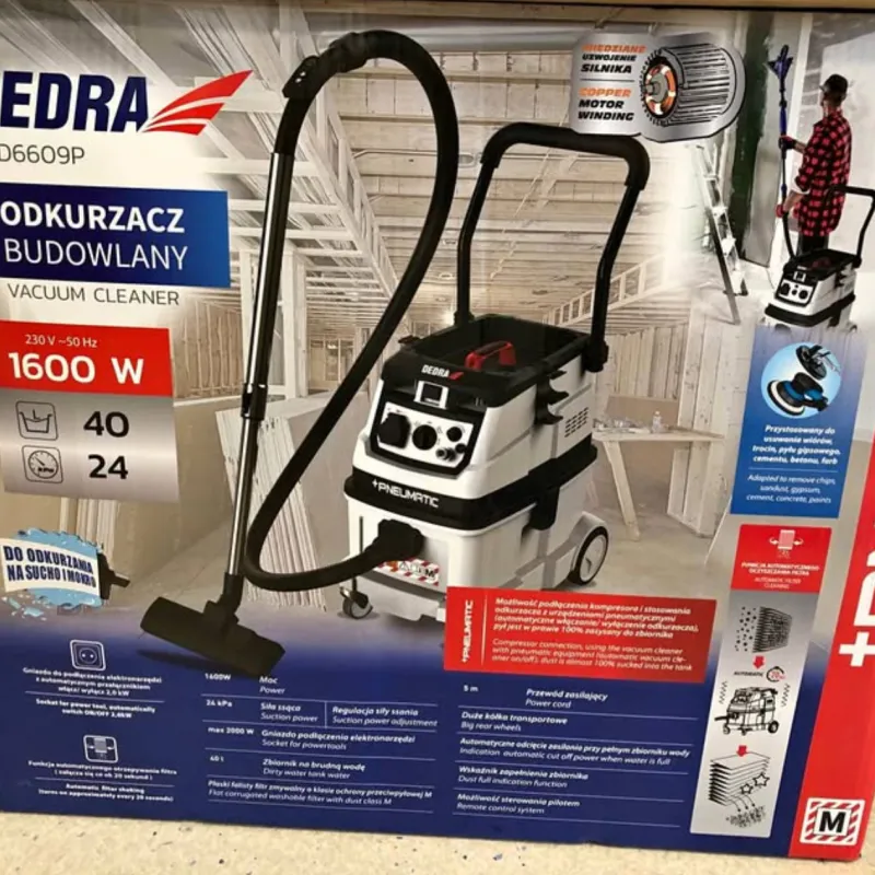 Statybinis dulkių siurblys DEDRA DED6609P, 1600W, 40l