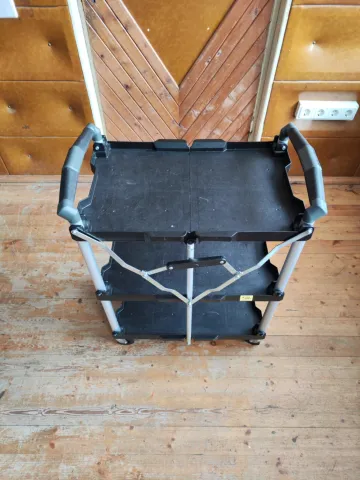 Tvirtas sulankstomas staliukas rekvizitui foro ar kino studijoje. Praktiškai nenaudotas iš studijos cinewave.lt.