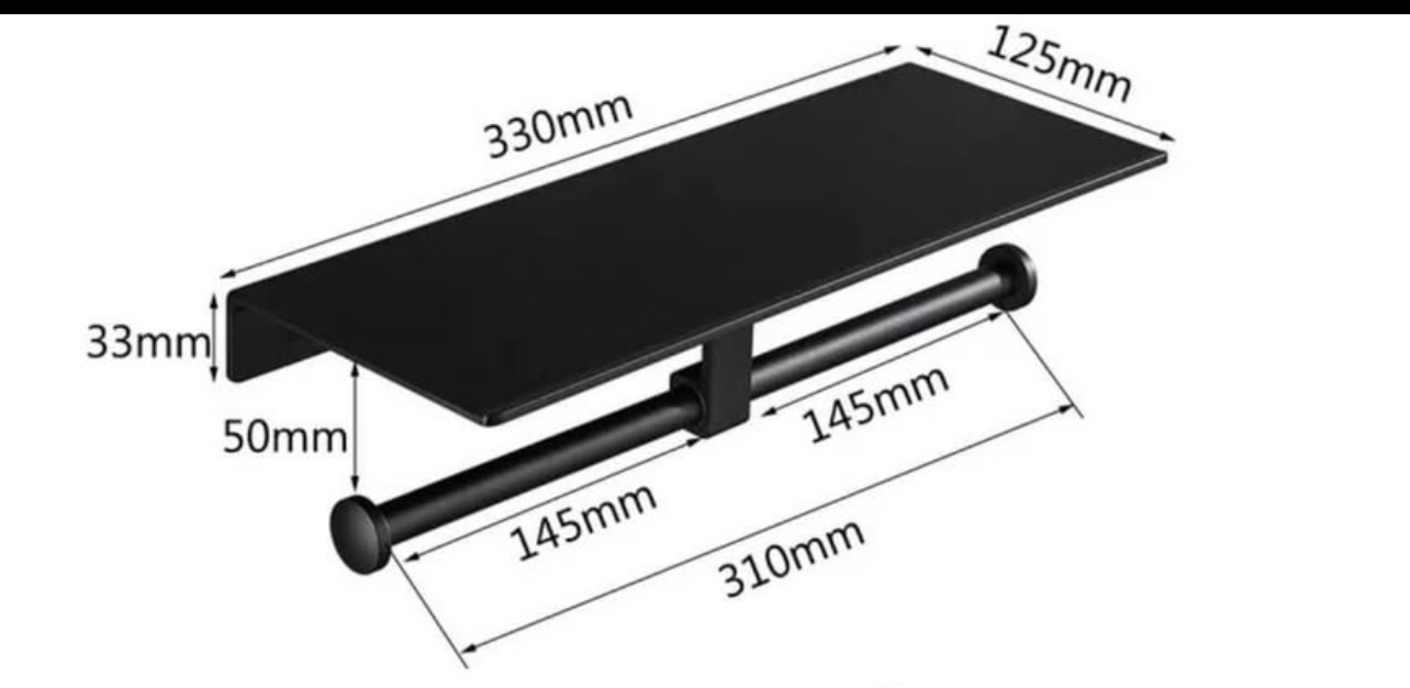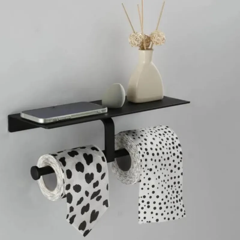 naujas juodas wc popoeriaus laikiklis su lentynele