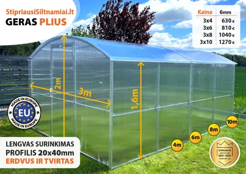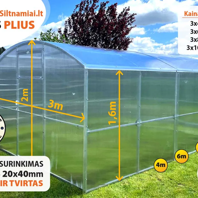 (Visi šiltnamiai pagaminti iš aukščiausios kokybės medžiagų, sertifikuoti pagal CE standartus).